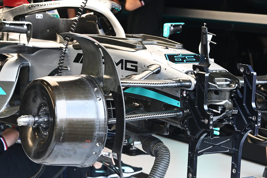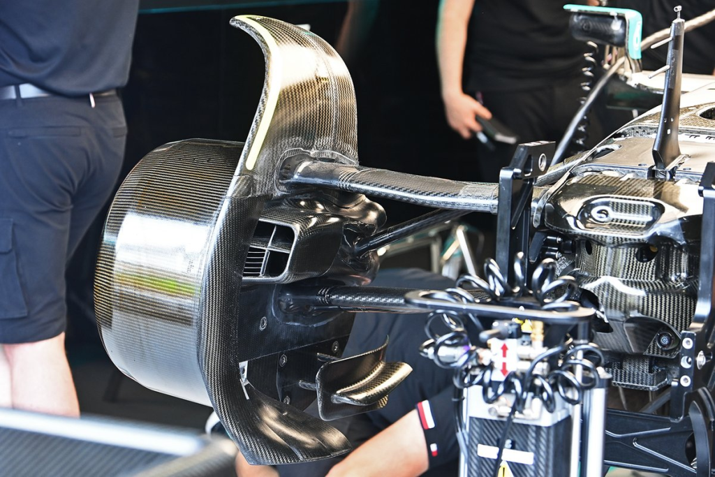 Moreover, the W13\’s front brake duct fence and inlet contain wirework in a channel to prevent debris like tyre marbles from getting collected inside.